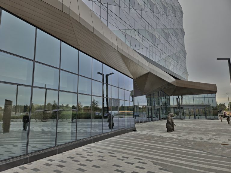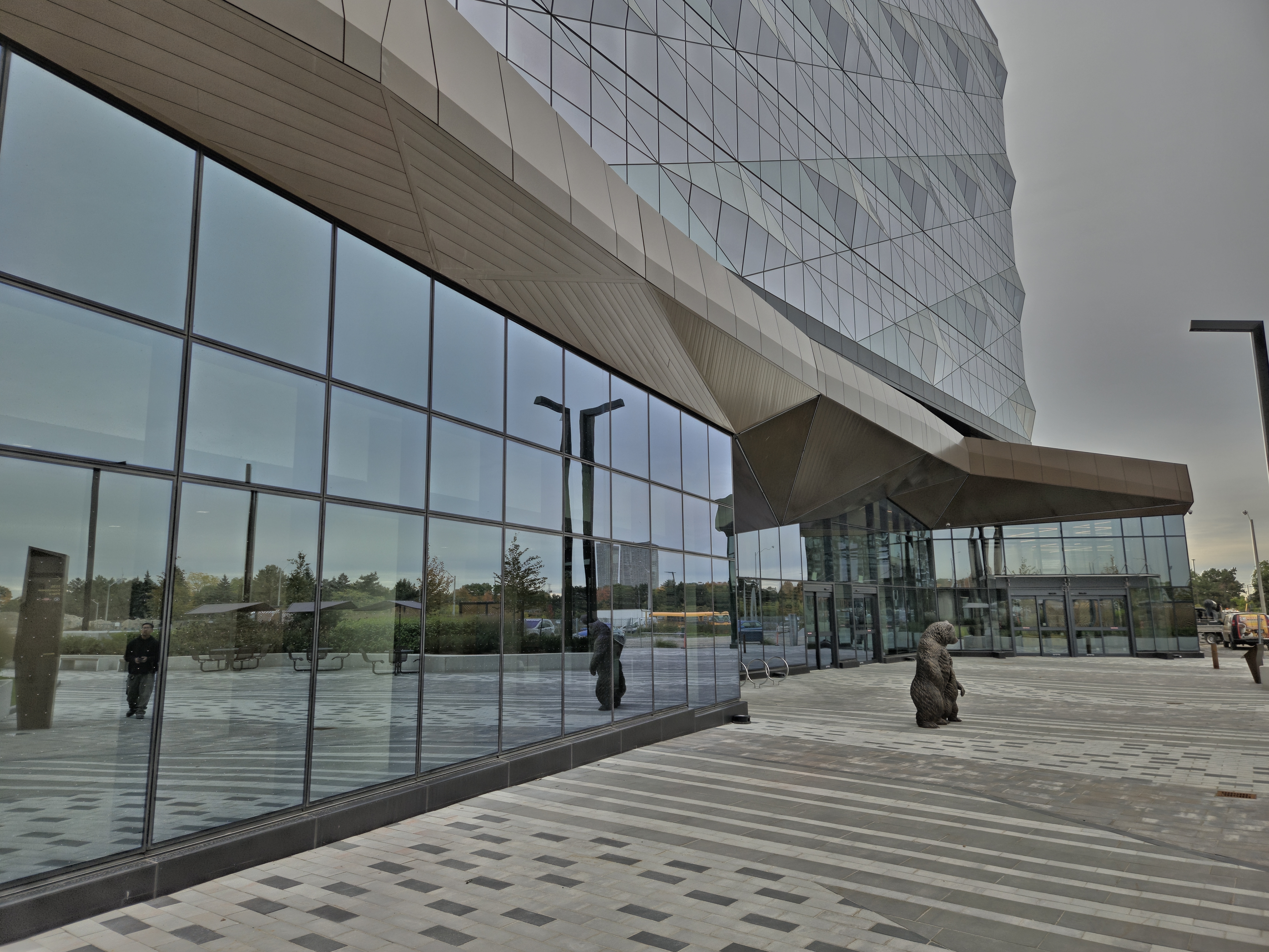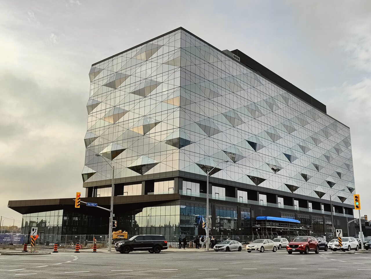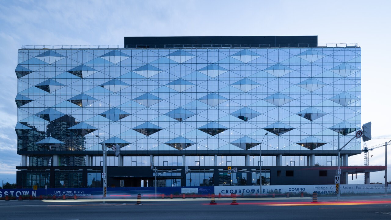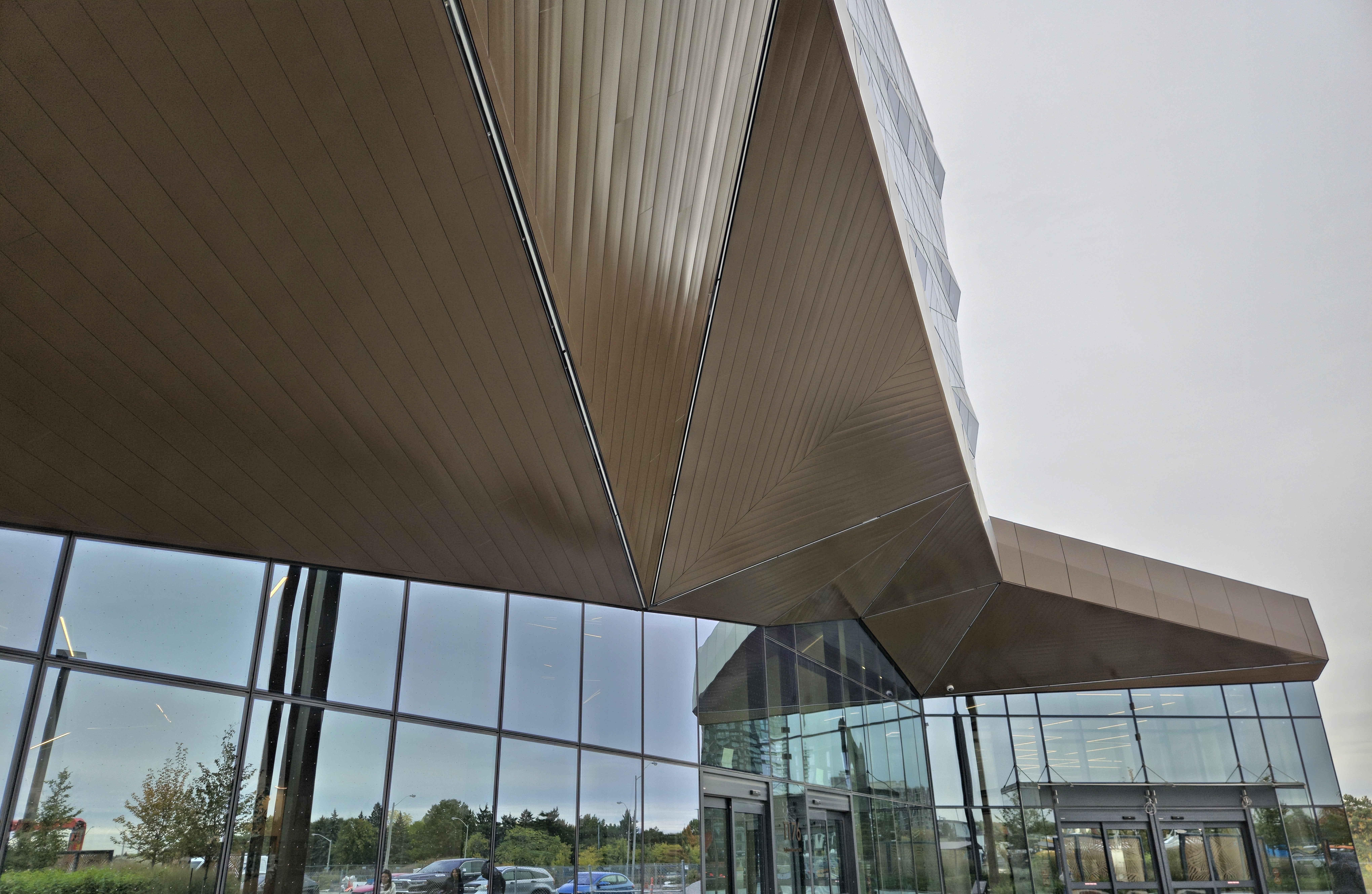 This dimensional layout transforms the soffit into a sculptural architectural feature, reinforcing the project’s faceted design language while delivering durability, clean transitions, and a refined metallic finish at street level. The project was designed by Toronto-based CORE Architects