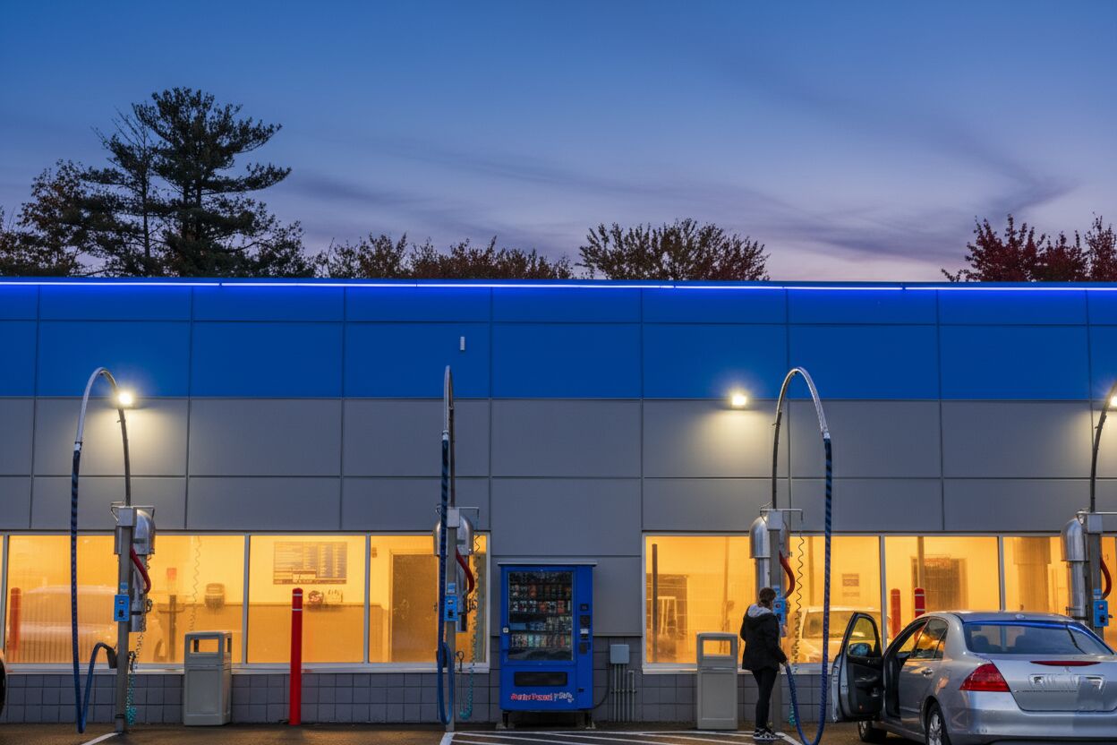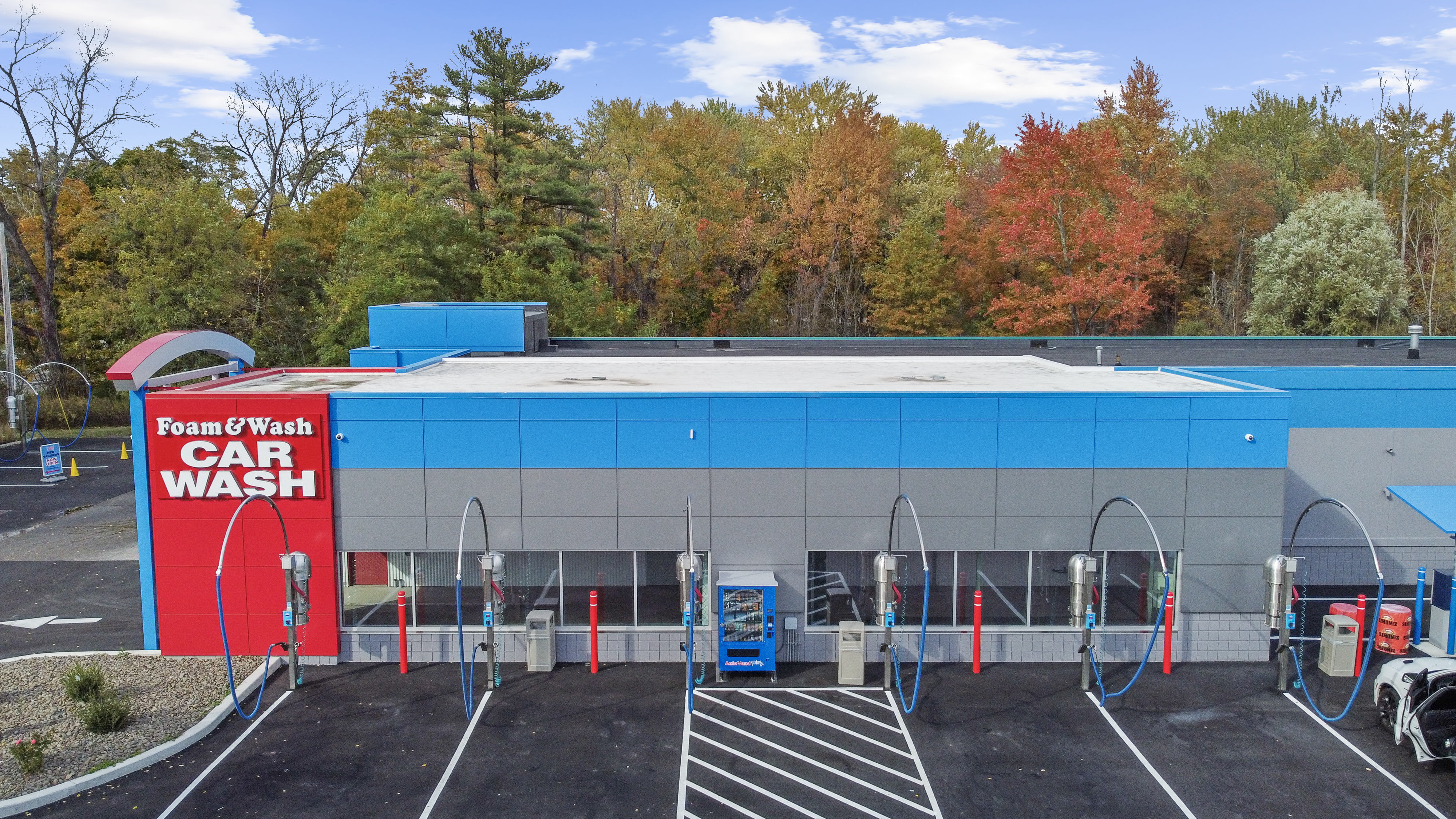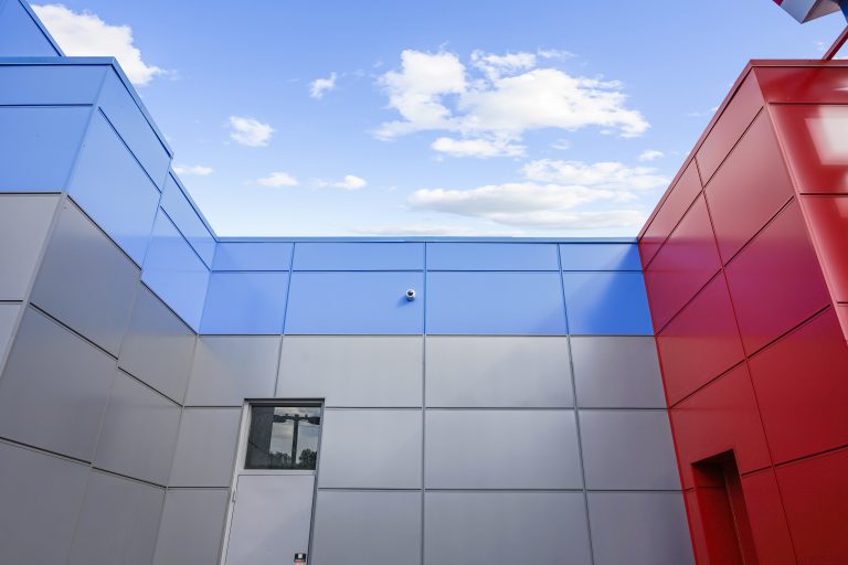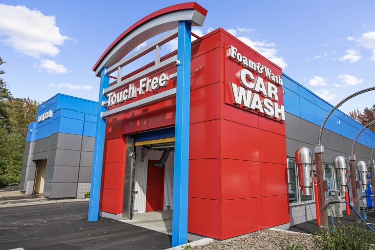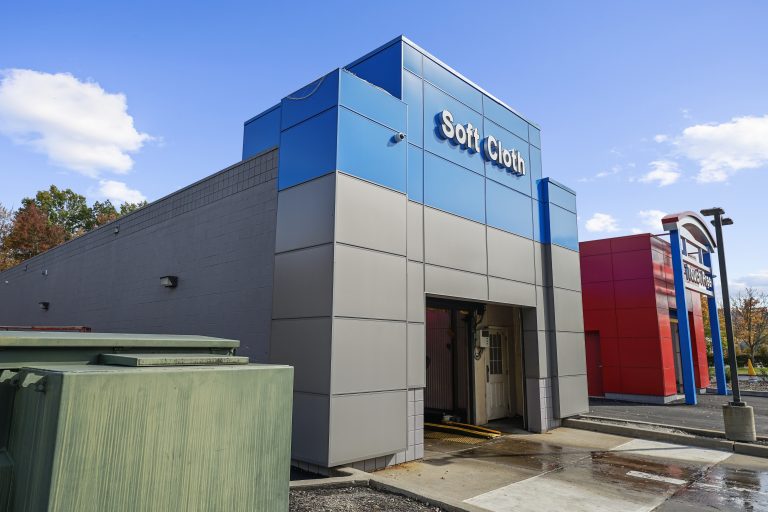 Foam & Wash trusted AL13 for multiple locations across New York, including this site in Fishkill, which features the AL13 Panel System in Pewter Metallic, Bowtie Blue, and Cornell Red. The vibrant colour mix enhances visibility and brand recognition, while the durable, low-maintenance panels ensure lasting performance in a demanding car wash environment.