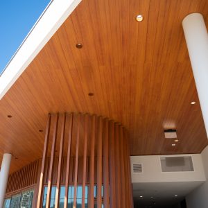 This institutional project in Mandan, North Dakota, showcases a dynamic mix of the AL13 Panel and Plank Systems. Featuring 2,100 sq ft of Galaxy Black panels and 4,300 sq ft of Light European Cherry planks, the design creates a bold contrast between sleek, modern finishes and warm natural tones. Together, these systems deliver a clean, contemporary aesthetic that complements the school’s architectural form while offering durability and ease of maintenance for high-traffic environments.